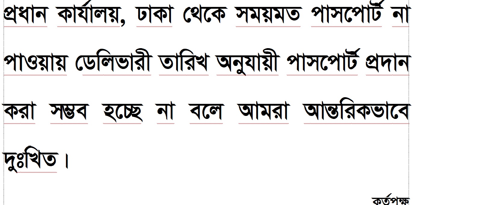 প্রধান কার্যালয়, ঢাকা থেকে সময়মত পাসপোর্ট না পাওয়ায় ডেলিভারী তারিখ অনুযায়ী পাসপোর্ট প্রদান করা সম্ভব হচ্ছে না বলে আমরা আন্তরিকভাবে দুঃখিত।